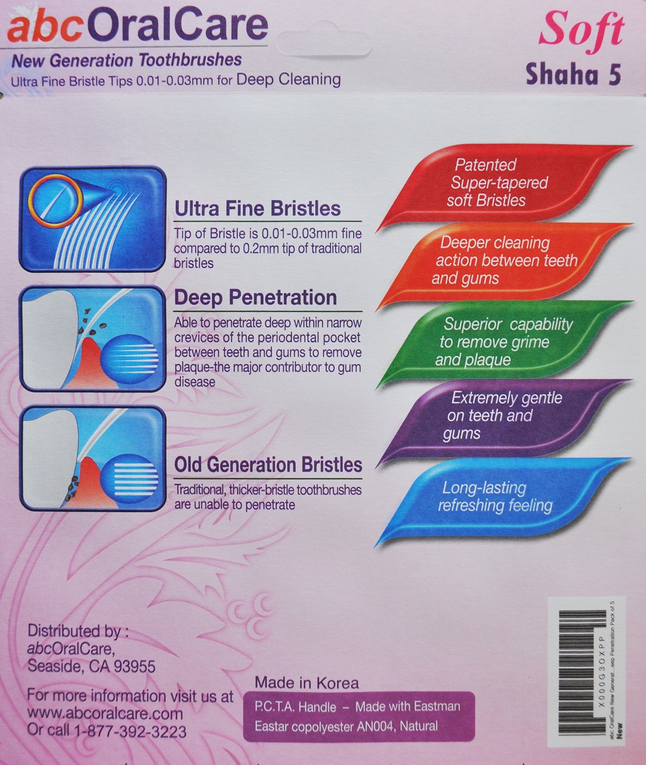 • Bristles are extremely gentle for teeth and gums but strong and fine enough to penetrate deep within narrow crevices of the periodontal pocket between teeth and gums to remove plaque, the major contributor of gum disease.